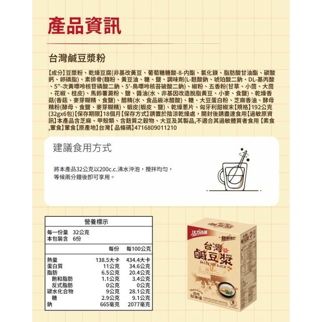 道地台灣味!(健康時代-台灣鹹豆漿)140卡 獨家首創沖泡鹹豆漿 很有料 隨身包裝輕鬆沖泡美味無添加