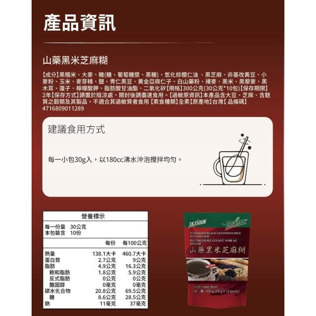 健康時代-山藥黑米芝麻糊有糖隨身包10入最新包裝!經期滋補黑米+山藥+黑芝麻多種配方營養補充便利隨身沖泡全素