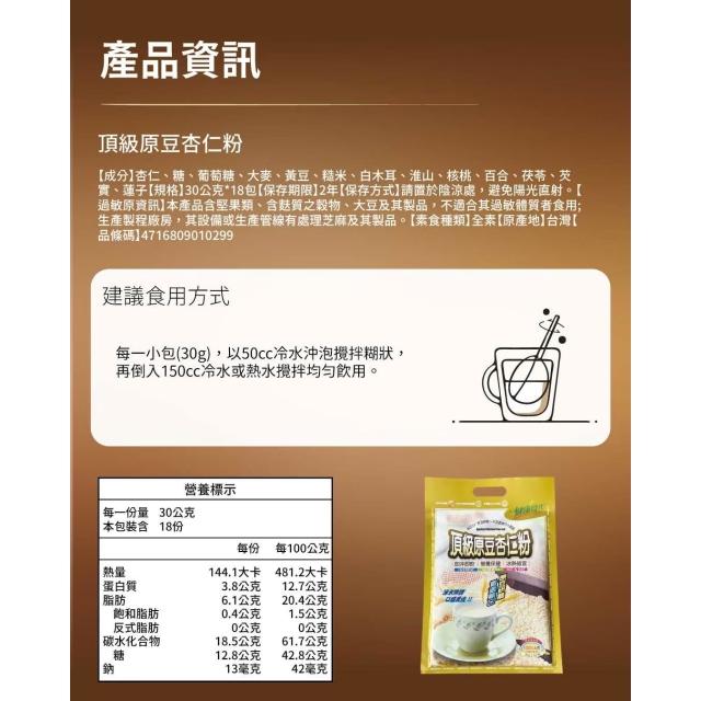健康時代《頂級原豆杏仁粉》(有糖)隨身包(30克X18包) 口感濃郁香醇 隨身便利