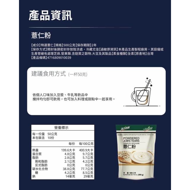 健康時代《薏仁粉》(無加糖)真正大薏仁!保證不添加!500公克大包裝