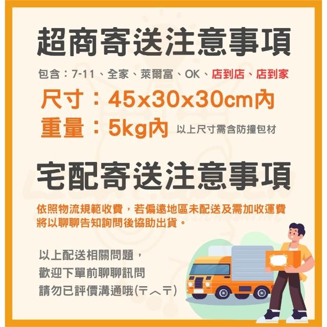 - 針對大型商品(包括:大型家電、家具床墊、健身按摩器材、車類...等),商店將於完成收款確認後,一天內〈不含例假日〉將會有專人與您確認相關配送細節等的聯繫。偏遠地區、樓層費及其它加價費用,皆由商店於約定配送時一併告知,商店將保留出貨與否的權利。