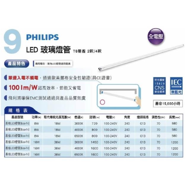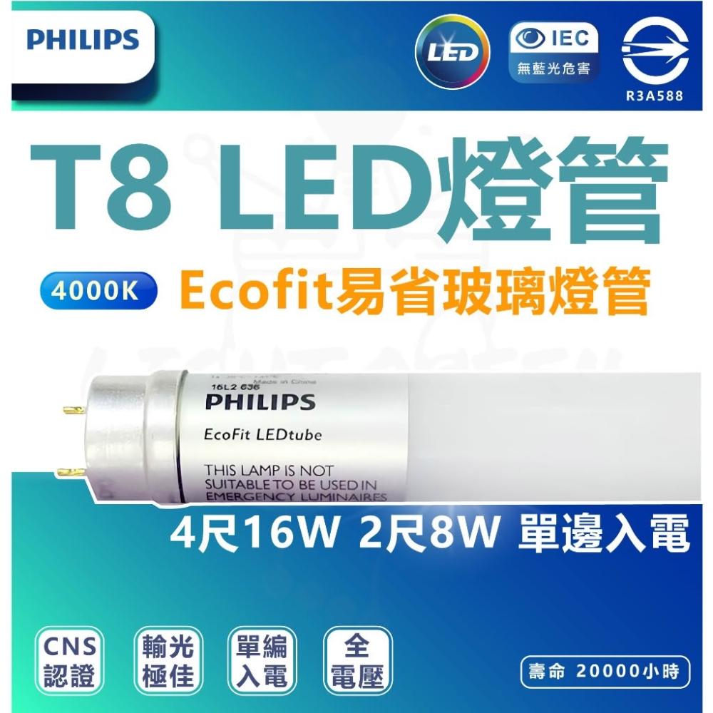 [ 單邊入電燈具專用 ] T8 LED Ecofit易省 玻璃燈管 4尺2尺 16w 8w 單邊入電專用 易省燈管