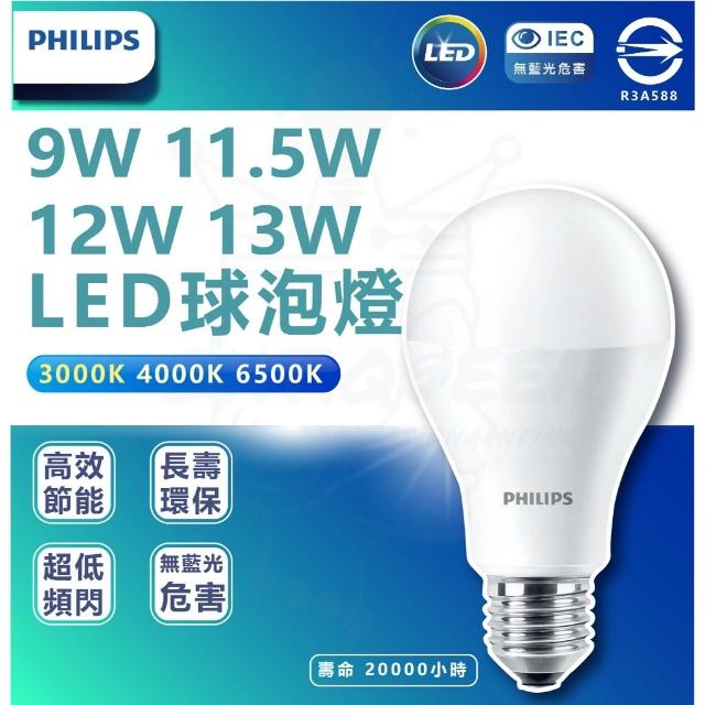 Philips 飛利浦LED 燈泡 易省燈泡 護眼無藍光無頻閃 E27燈泡 省電球泡燈 9W 11W 12W