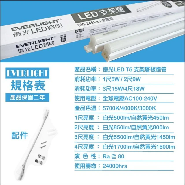 Everlight 億光億光 EVERLIGHT LED 1尺/2尺/3尺/4尺 支架燈 層板燈 間接照明 T5 全電壓