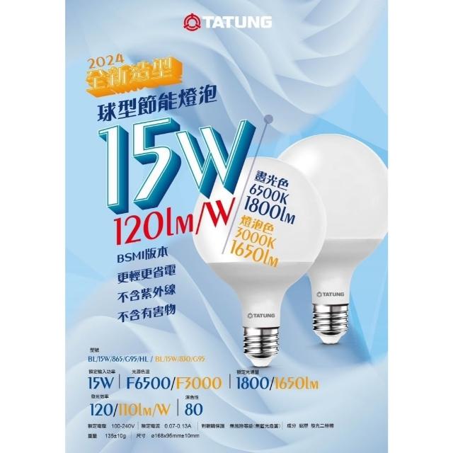 TATUNG 大同LED 超節能燈泡 G95 15W LED燈泡 球型燈泡 節能燈炮 龍珠燈 圓形燈 圓燈泡 燈泡 E27 燈后