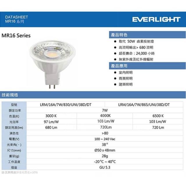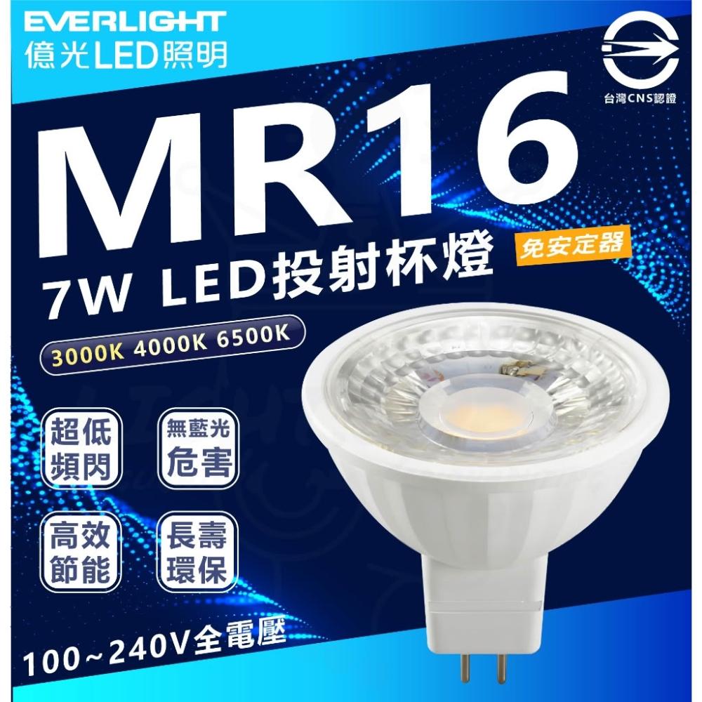 Everlight 億光億光 LED MR16 7W 免安 白光 黃光 杯燈 燈泡 投射 高亮度 燈具 崁燈 免驅動 MR16 LED杯燈 燈后