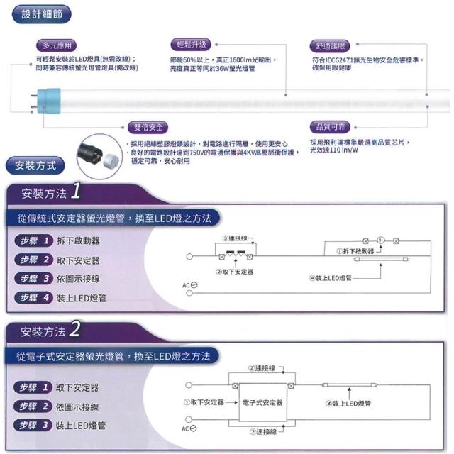 Philips 飛利浦飛利浦 LED T8雙端入電 玻璃燈管 18.5w 9.5w 雙邊入電 LED燈管 省電燈管