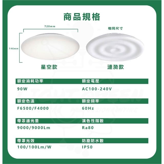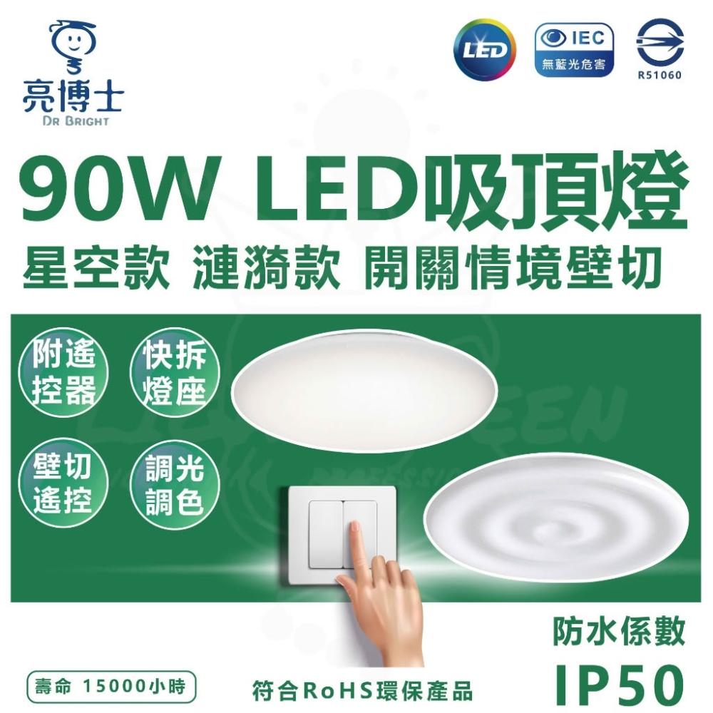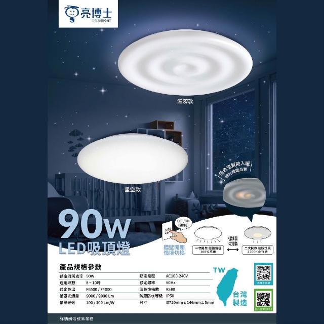 亮博士亮博士 90W LED吸頂燈 適用8-10坪 壁切兩段調光 全亮/助眠夜燈 防塵防水IP50 燈后