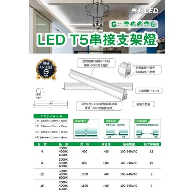 喜光全光譜LED T5 串接支架燈 支架燈 塑膠燈管 串接燈 2尺 4尺 快速安裝 一體式燈具 燈后