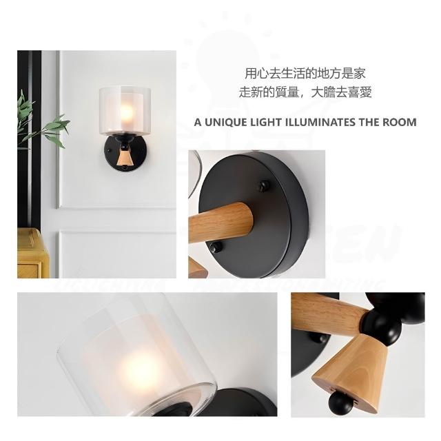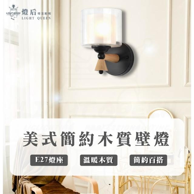 美式玻璃木質壁燈 玻璃壁燈 美式壁燈 簡約壁燈 木質壁燈 客廳燈 走廊燈 樓梯燈 輕奢 時尚 簡約 低調 燈后