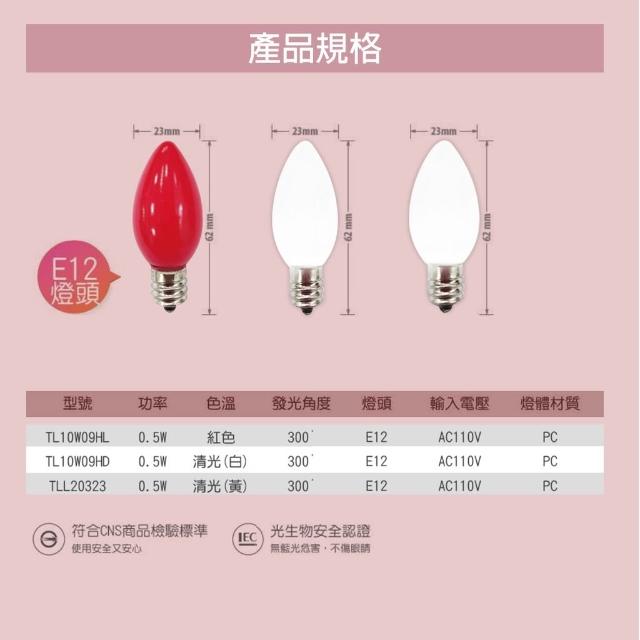 TATUNG 大同大同 0.5W LED 節能 神明燈泡 E12 小燈泡 紅光 清光 白光 省電燈泡 小夜燈 燈后