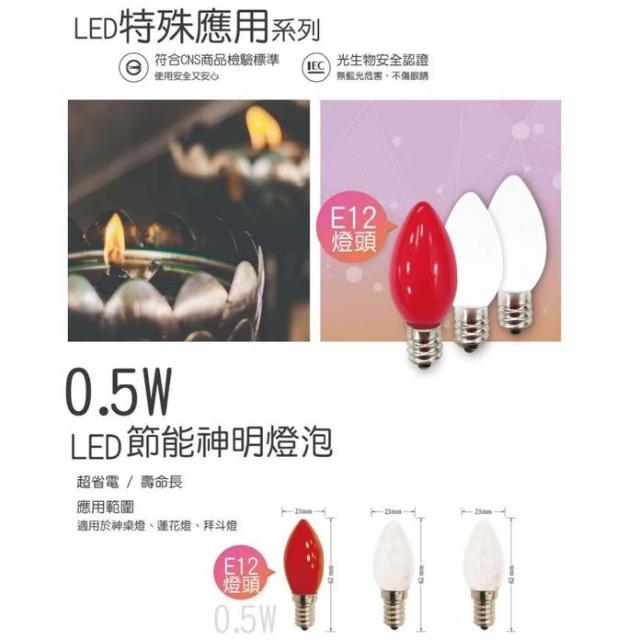 TATUNG 大同大同 0.5W LED 節能 神明燈泡 E12 小燈泡 紅光 清光 白光 省電燈泡 小夜燈