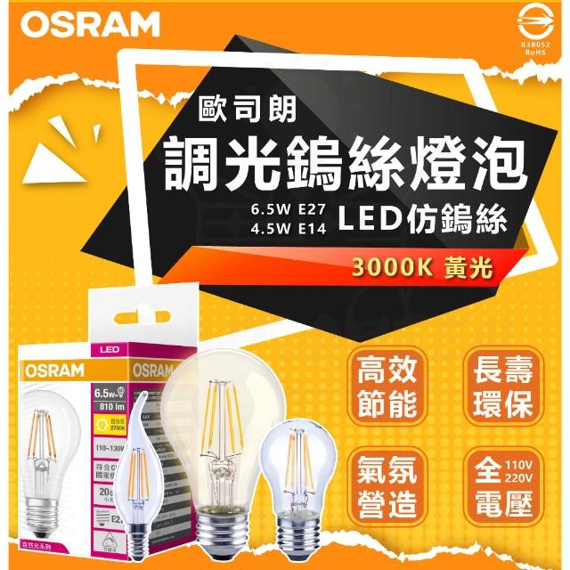OSRAM 歐司朗 可調光 LED 復古 燈絲燈 7W 4.5W 6.5W E27 E14 仿鎢絲燈泡 裝飾照明