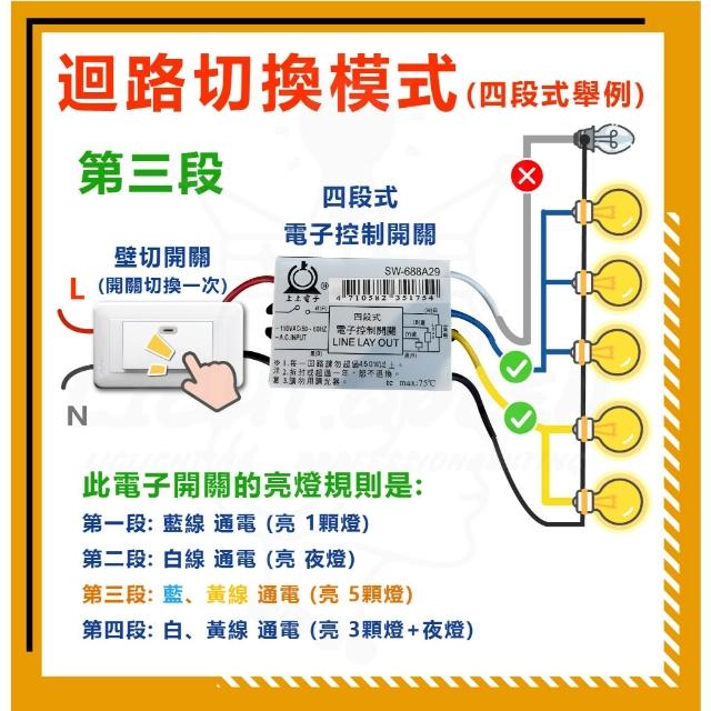 三段式 電子 控制 開關 CNS認證 110V IC 分段 電腦開關 變段 跳段 切換 燈具 美術燈 吊扇 燈后
