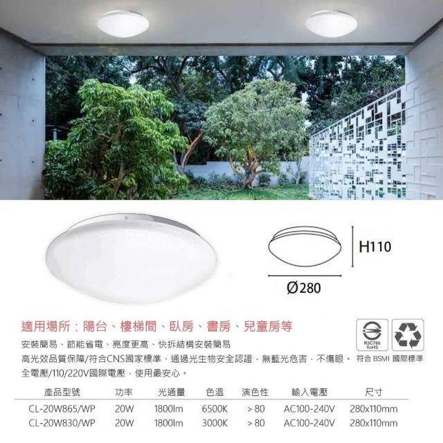 TATUNG 大同大同 LED 防水 吸頂燈 20W 防水燈具 衛浴 戶外 IP65 LED吸頂燈 戶外燈具 小坪數燈具 防水 防塵 燈后