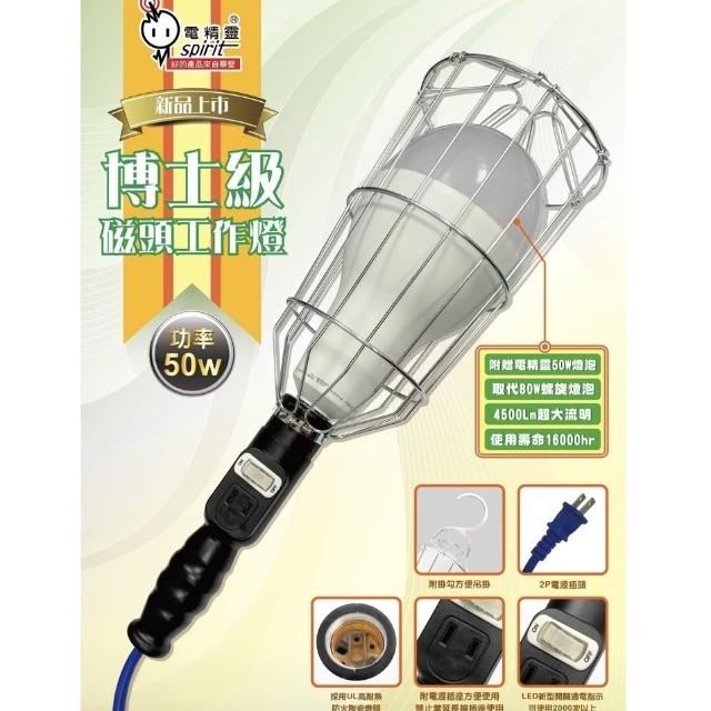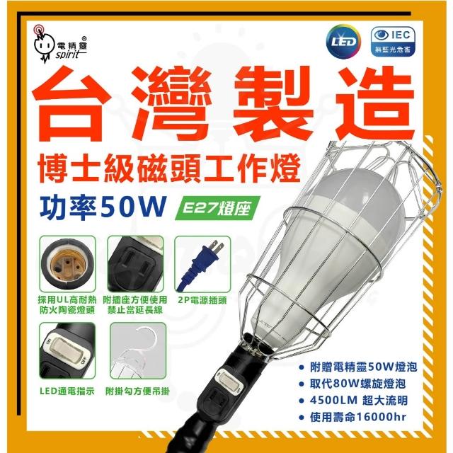 spirit 電精靈博士級磁頭工作燈 大瓦數 50W LED工作燈 E27 插座工作燈 工地燈 露營燈 附燈泡 耐高溫 燈后