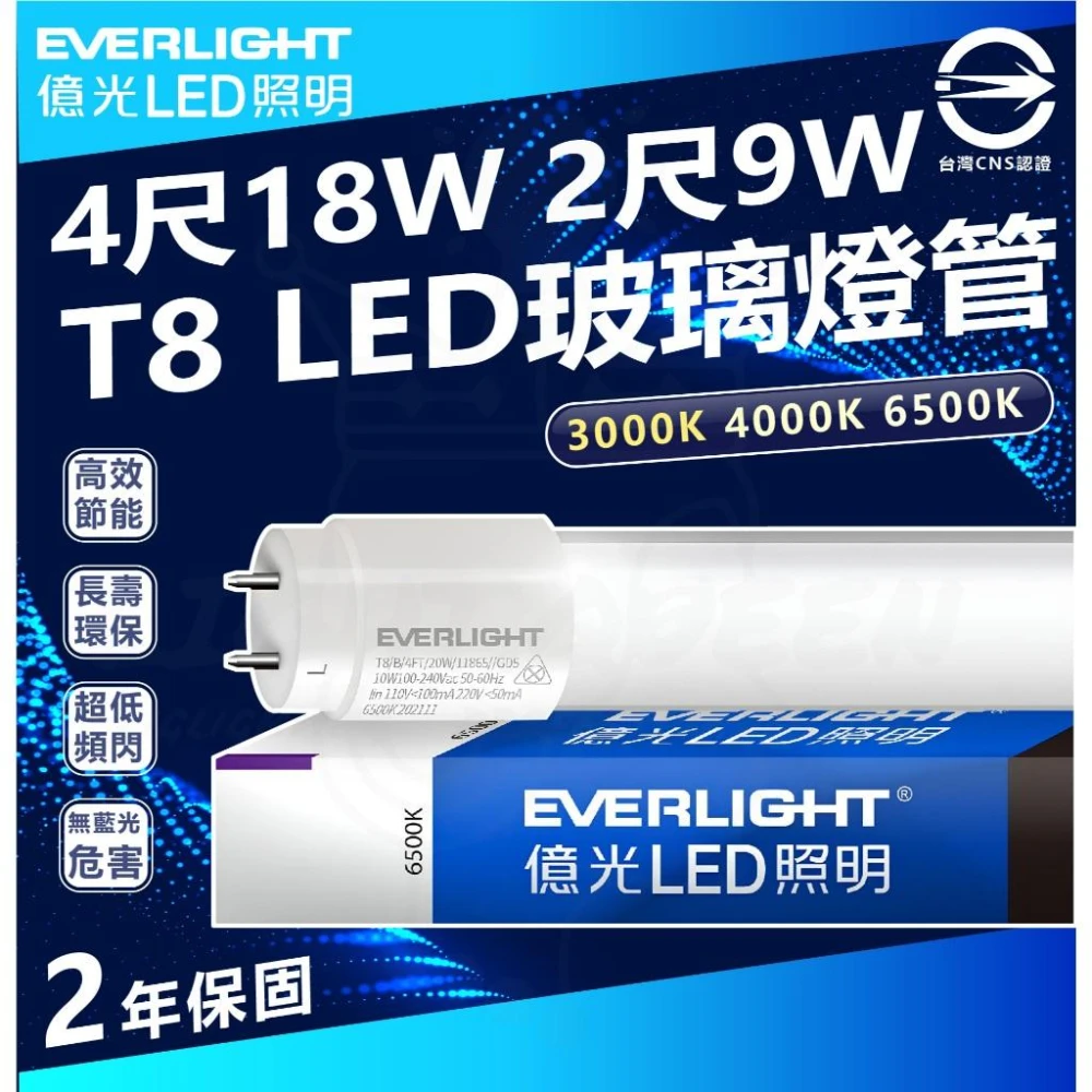 Everlight 億光[10支免運] 億光知名大品牌 T8 LED燈管 4尺20W / 2尺10W T8 燈管 間接照明 玻璃燈管 全電壓 燈后