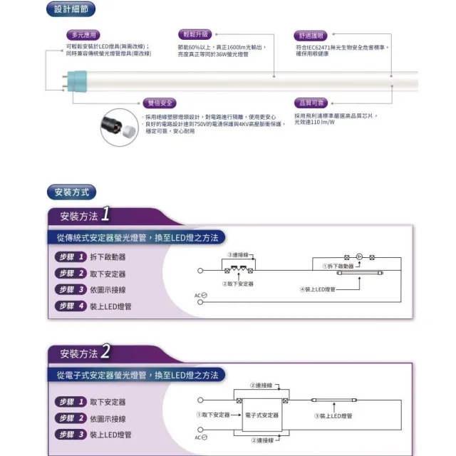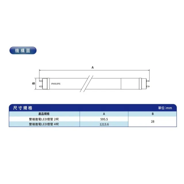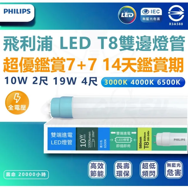Philips 飛利浦[ 飛利浦最新版本 ] T8 LED 最新 雙端入電 玻璃燈管 18.5w 9.5w雙邊 燈管 2尺 4尺 LED燈管