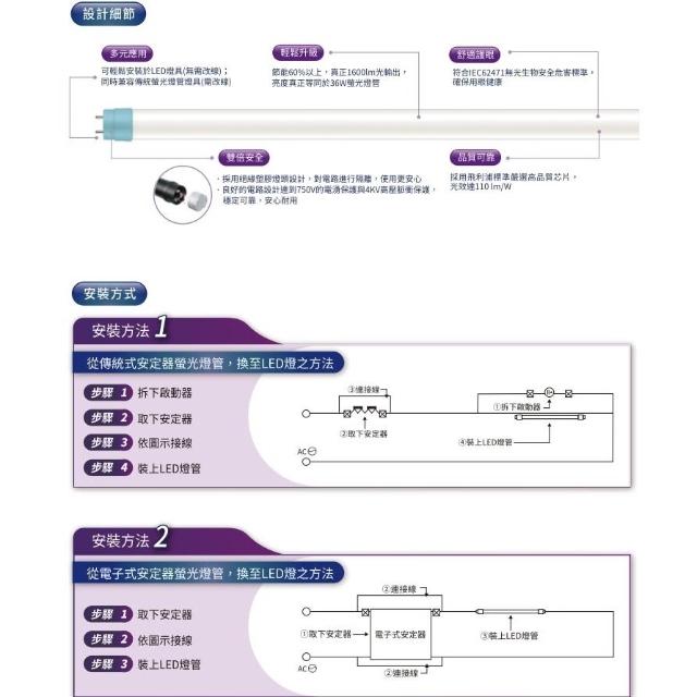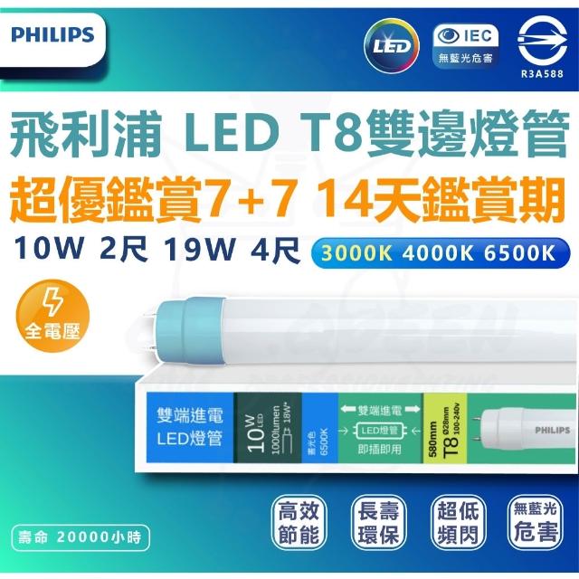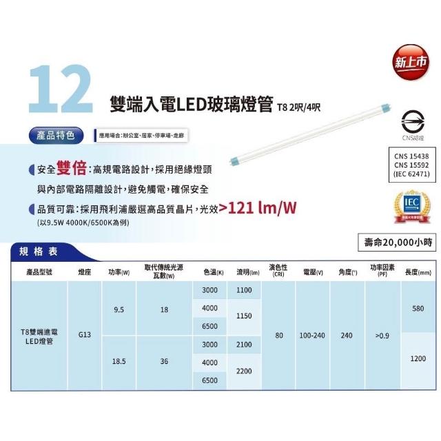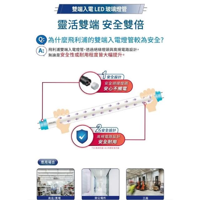 Philips 飛利浦[ 飛利浦最新版本 ] T8 LED 最新 雙端入電 玻璃燈管 18.5w 9.5w雙邊 燈管 2尺 4尺 LED燈管 燈后