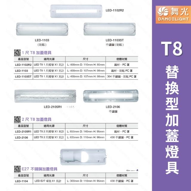DanceLight 舞光T8 2呎 加蓋不鏽鋼燈座 替換式燈座 台灣製造 可加購燈管 浴室吸頂燈 壁燈 燈后