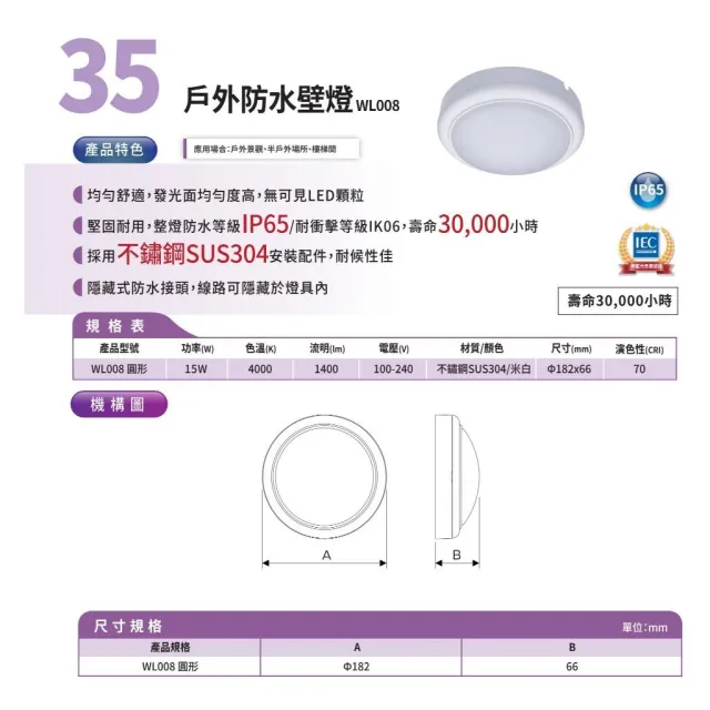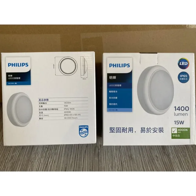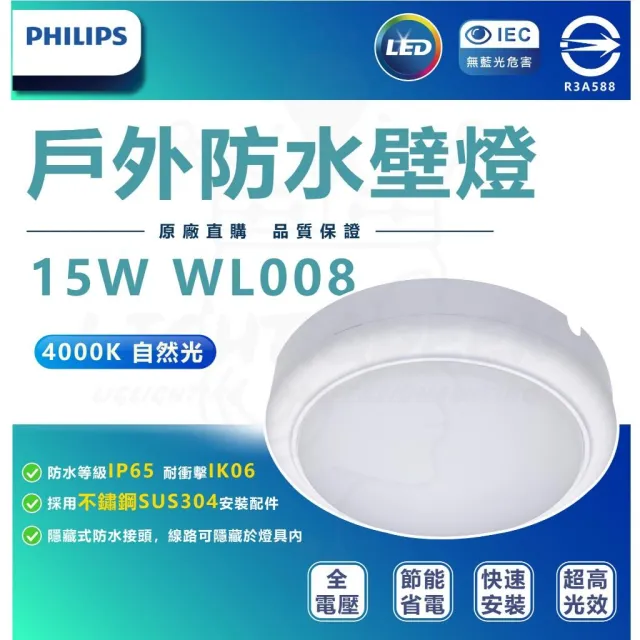 Philips 飛利浦飛利浦 WL008 LED 15W 自然光 全電壓 IP65 戶外防水壁燈 吸頂燈 無藍光 有保固 燈后