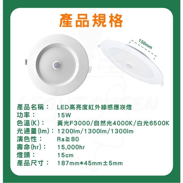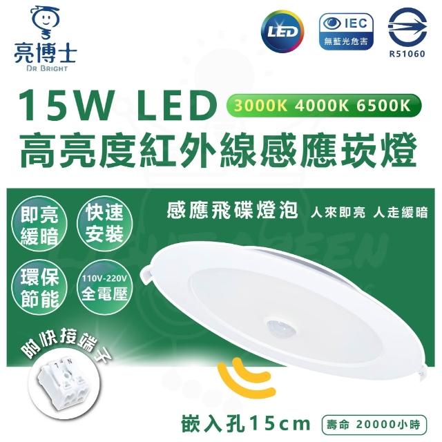 亮博士亮博士 LED 紅外線感應 崁燈 人體感應 無藍光 15W 崁孔15cm 全電壓 三種色溫 感應 燈后