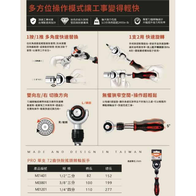 MXM專業型 72齒 3/8" 三分搖頭快脫棘輪扳手 套筒工具組 / MI84021 組裝式板手 多功能 燈后