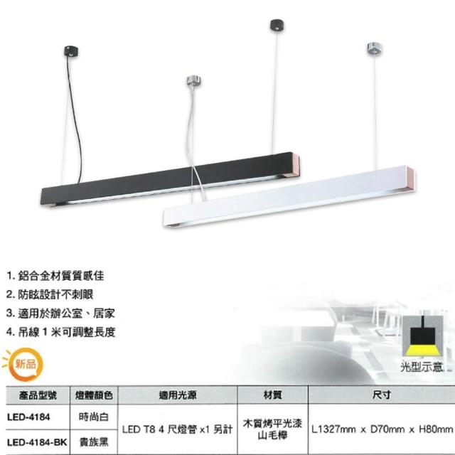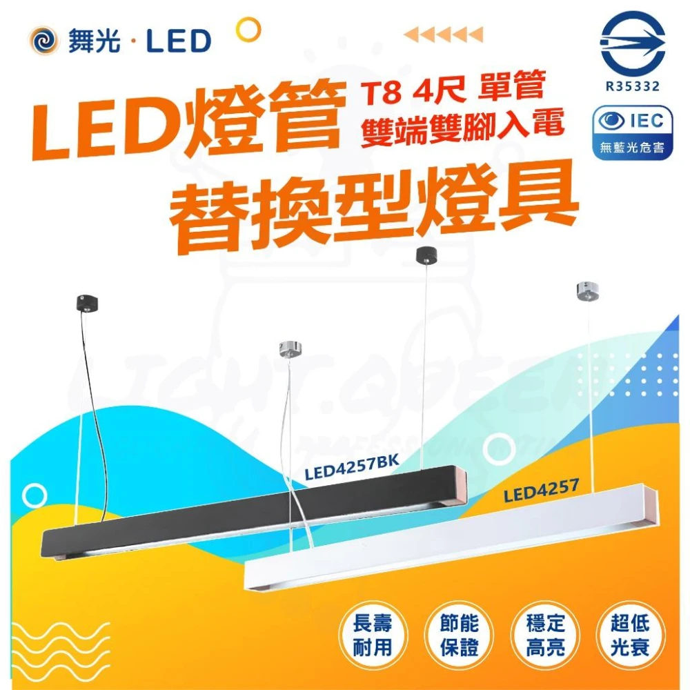 DanceLight 舞光LED燈管替換型吊桿式燈具 T8 4尺 空台 不含光源 國家CNS認證 LED4184 BK 燈后