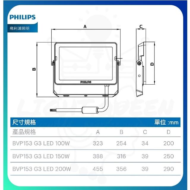 Philips 飛利浦大瓦數戶外投光燈 BVP153 投光燈 100W 150W 200W 防水防塵 IP65 投射燈 燈后