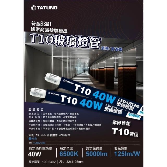 TATUNG 大同大同 40W T10 4尺 LED高亮度燈管 白光 T8 燈座通用燈管 省電燈管 高亮度燈管 LED燈管