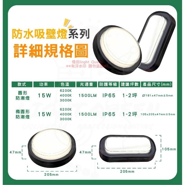 🚀亮博士 新品-曜弧15W LED 圓形 /橢圓形 防潮吸壁燈 IP65 可指撥調色 陽台燈 玄關燈 門口燈 戶外防水