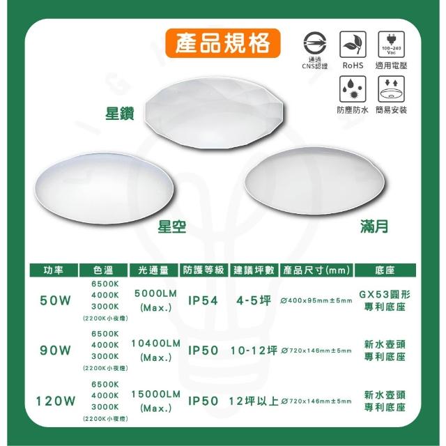亮博士-120W 90W 50W 遙控調光吸頂燈 多段調光調色 快速安裝 客廳燈 LED吸頂燈 臥室燈 星鑽 星空 滿月 燈后