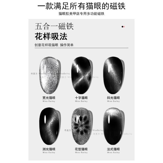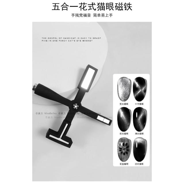 美麗佳人 新款貓眼強力磁鐵甲油膠五合一多功能磁鐵十字花式吸鐵石美甲工具