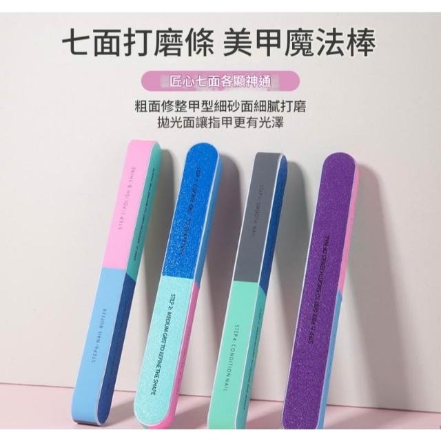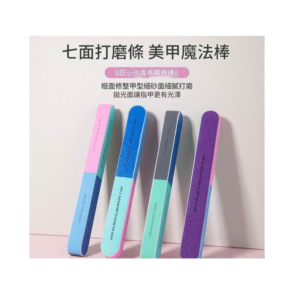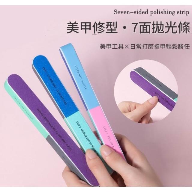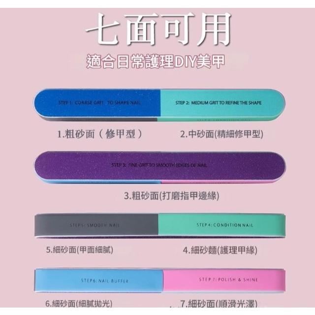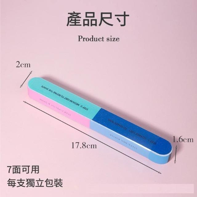 彩色七面多功能指甲銼海綿拋光搓修型打磨砂條美甲工具