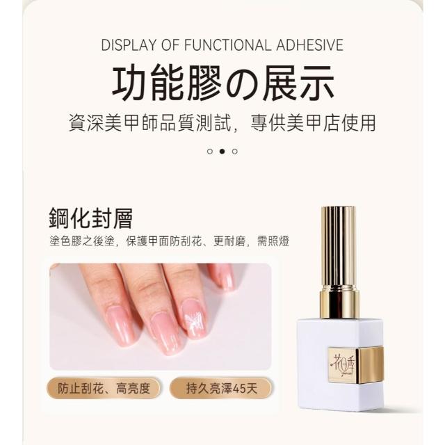 花日季 白方瓶 美甲功能膠 甲油膠 全新升級美甲功能膠 底膠封層套裝 12ml