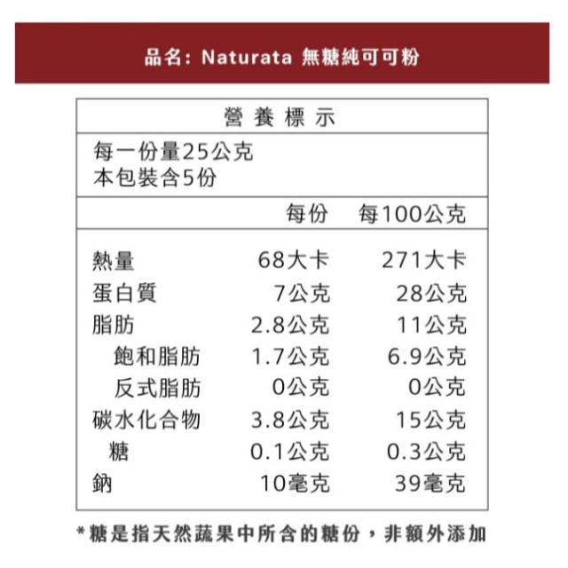 泰宗生技Naturata 無糖純可可粉(125g/盒)/效期2027.07.24 #全素 #炭中和產品