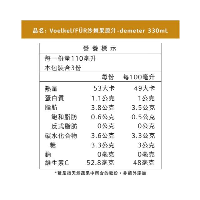 泰宗生技Voelkel維可 100%沙棘果原汁(330ml/瓶)/效期2026.10.01 #SANDDORN #沙棘汁