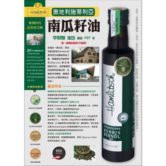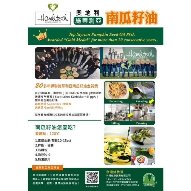 《林博》奧地利施蒂利亞南瓜籽油250ml #南瓜籽油