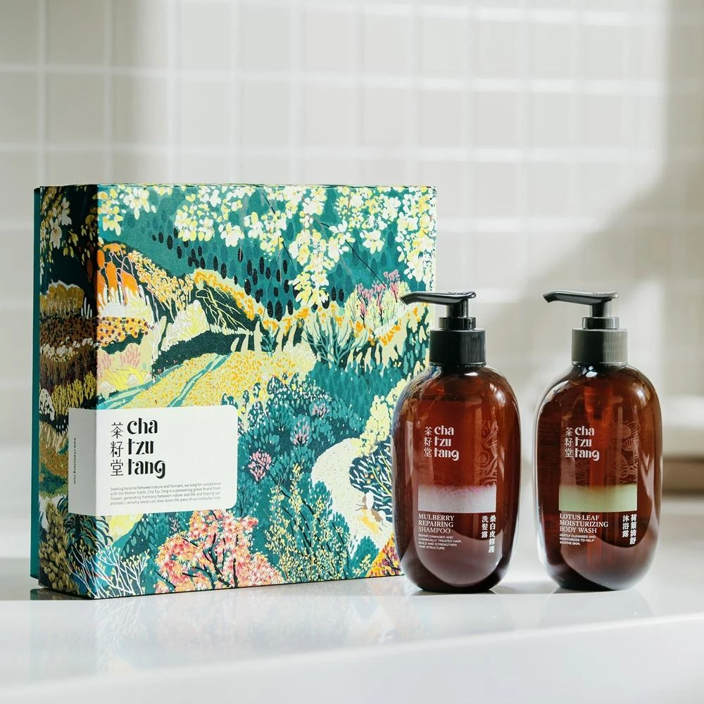 茶籽堂迎豐果年度版畫 飯店經典雙入禮盒_桑白皮洗髮露330mL+荷葉沐浴露330mL