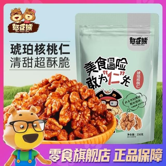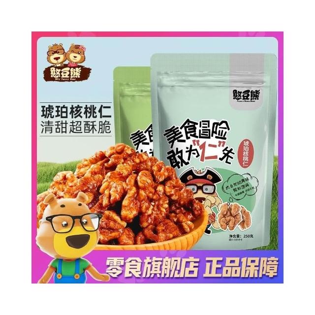 津津樂道 憨豆熊 琥珀核桃仁500g/袋蜂蜜味芝麻味熟薄皮紙皮核桃仁零食250g