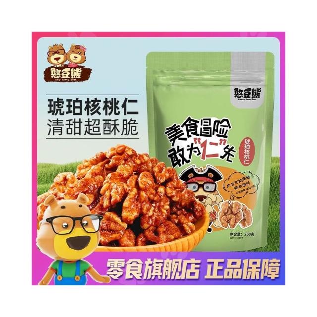 津津樂道 憨豆熊 琥珀核桃仁500g/袋蜂蜜味芝麻味熟薄皮紙皮核桃仁零食250g