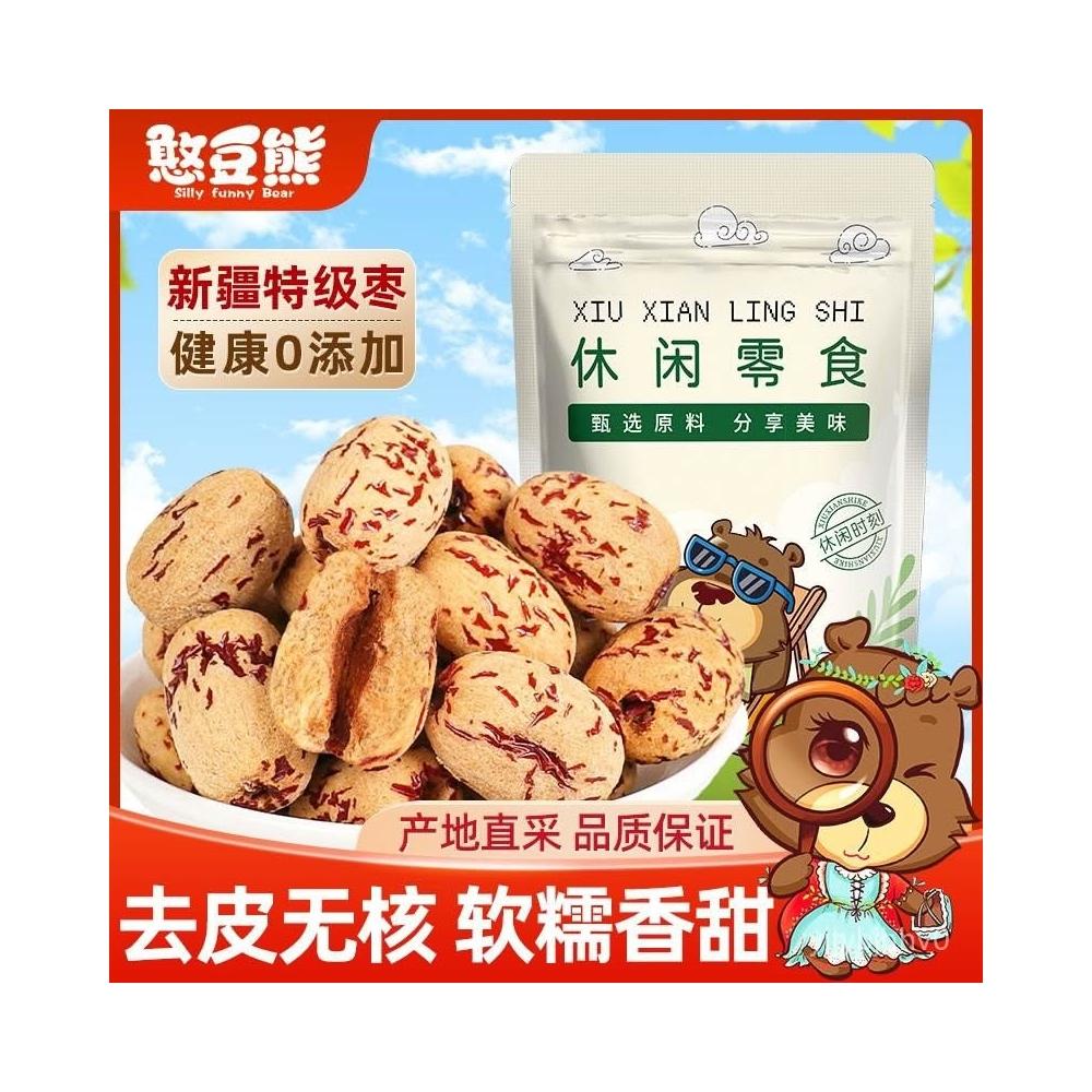 津津樂道 憨豆熊去皮無核紅棗250g袋裝無添加新疆若羌灰棗特級大棗零食