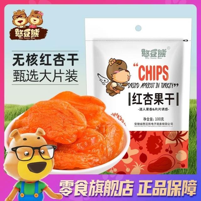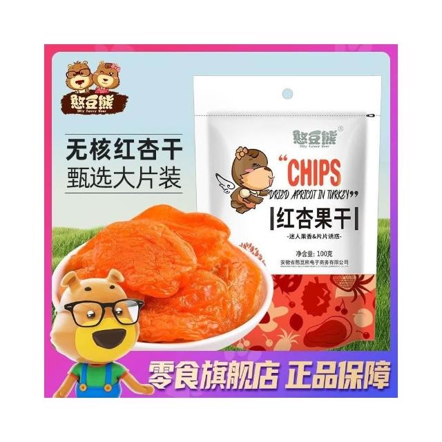 津津樂道 憨豆熊紅杏幹100g/袋杏脯肉果脯蜜餞水果幹無核杏脯杏幹休閒零食