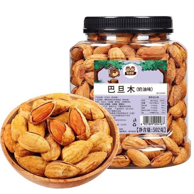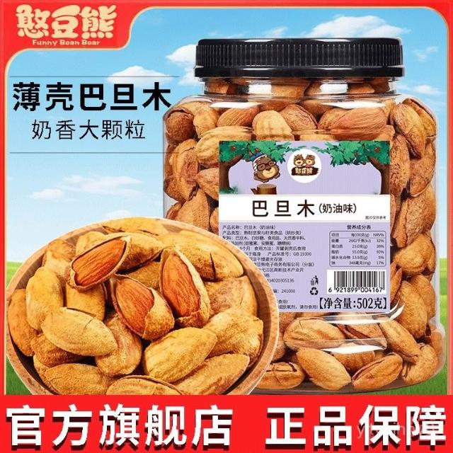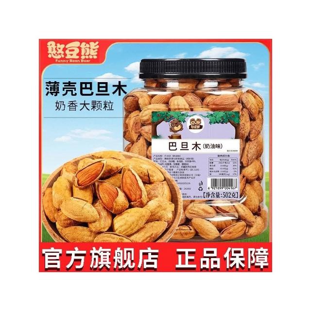 津津樂道 憨豆熊新貨巴旦木凈重502g大罐裝奶油味薄皮扁桃杏仁堅果炒貨批髮