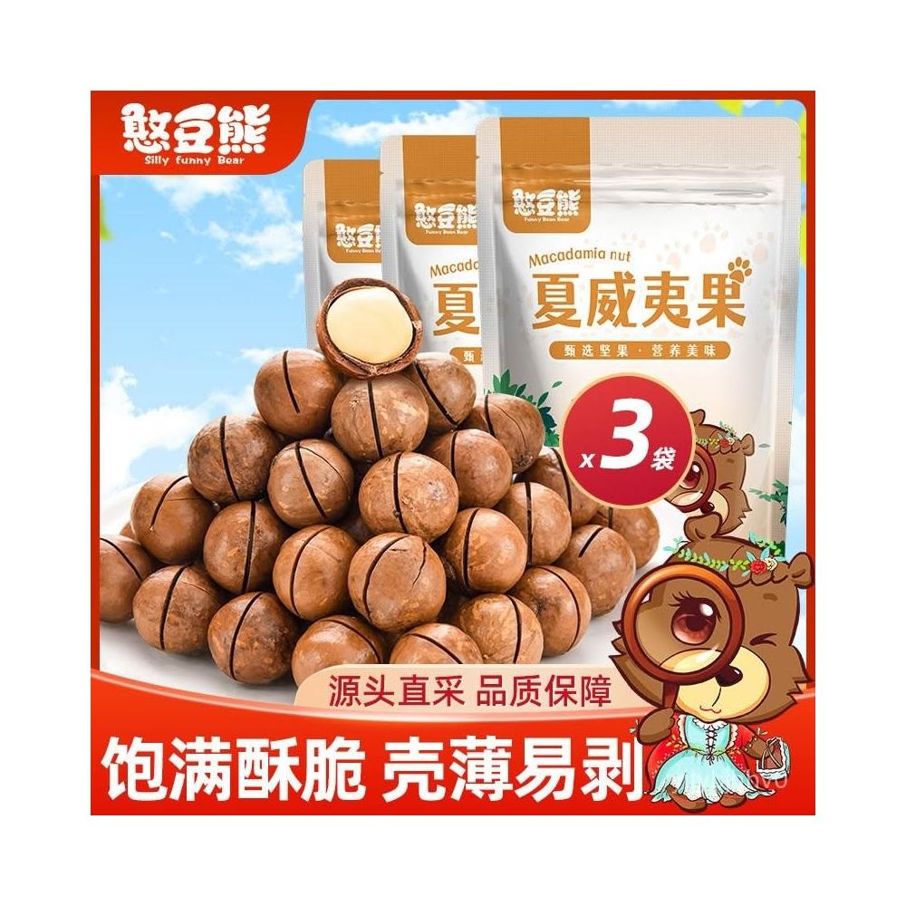 津津樂道 憨豆熊夏威夷果60g*3袋便攜裝奶香味大開口堅果炒貨休閒零食