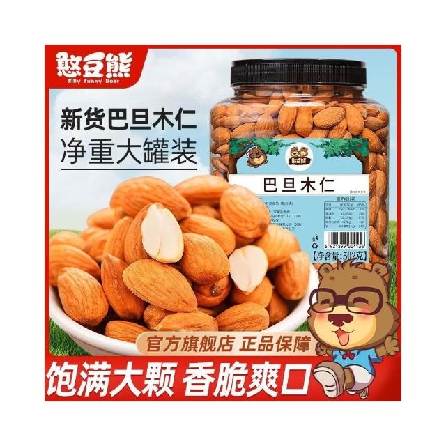 津樂道 【597.8萬人迴購該品牌憨豆熊 巴旦木仁502罐裝無殻大杏仁扁桃仁堅果幹果零食批髮
