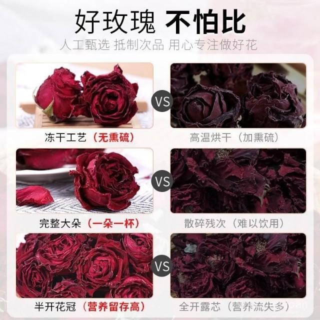 美美優選 養辰雲南精選大朵凍幹墨紅玫瑰花茶幹玫瑰花冠泡茶一朵一杯50g45g