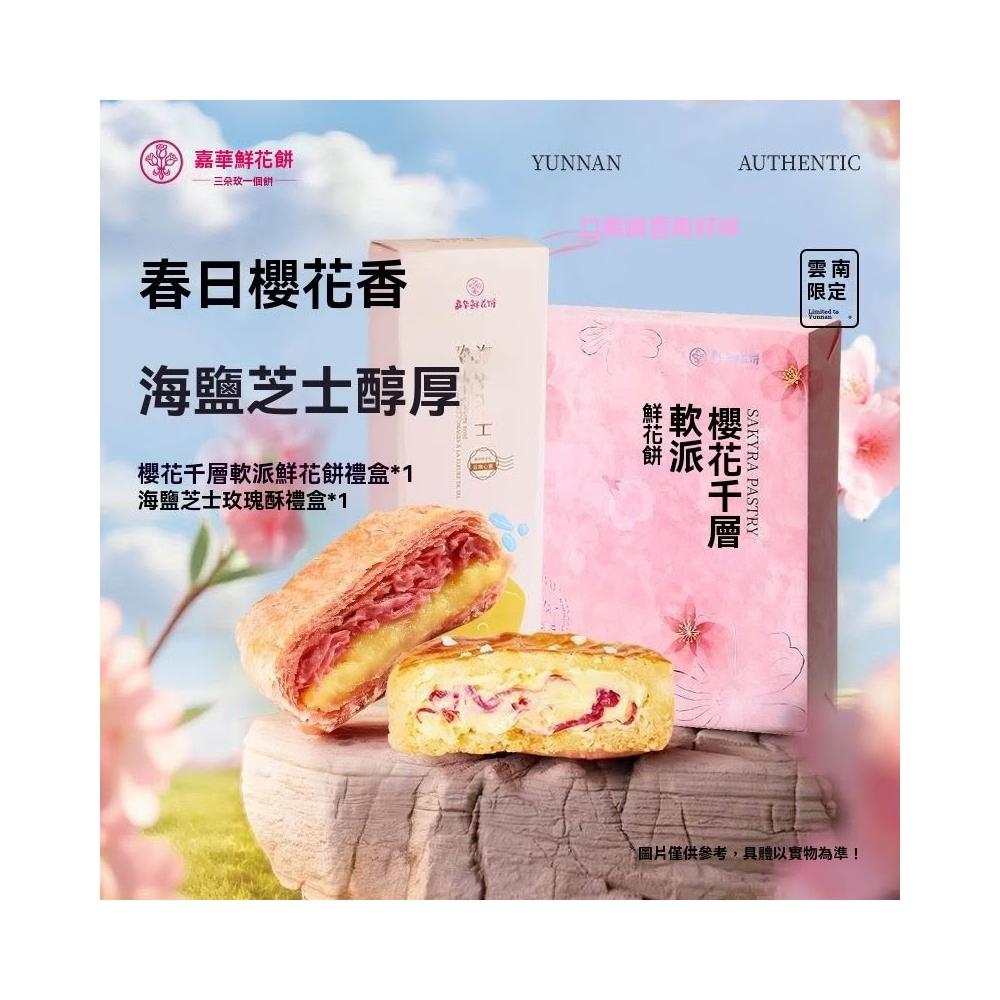 熱賣中嘉華鮮花餅280g櫻花千層軟派海鹽芝士玫瑰酥盒裝雲南風味零食糕點