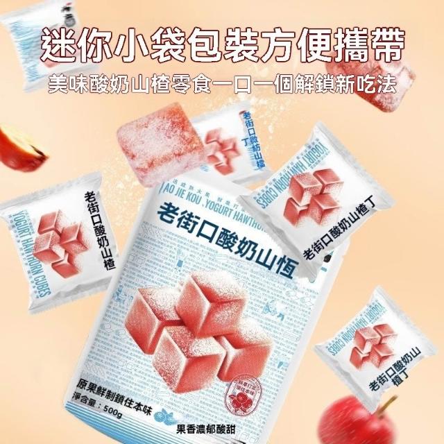熱賣中 老街口酸奶山楂丁500g山楂條果丹皮果脯蜜餞休閒解饞零食獨立包裝