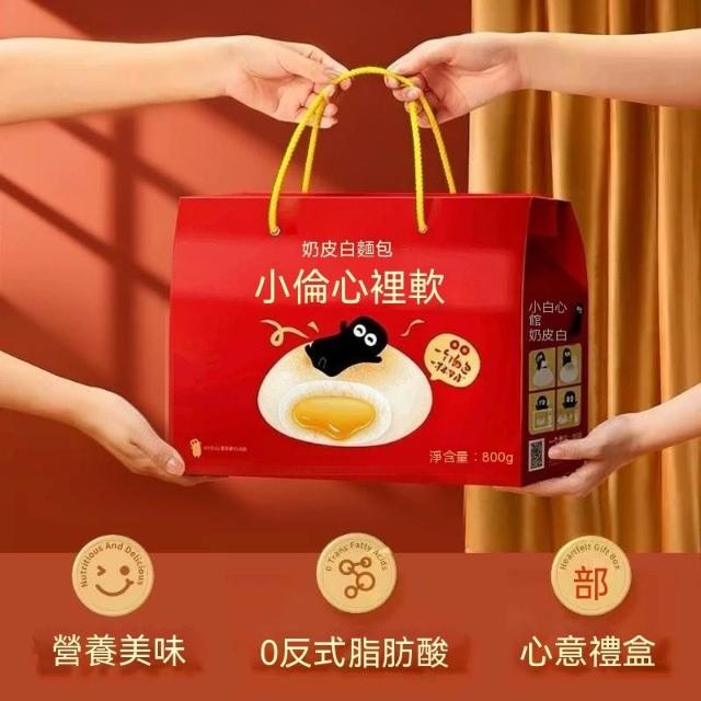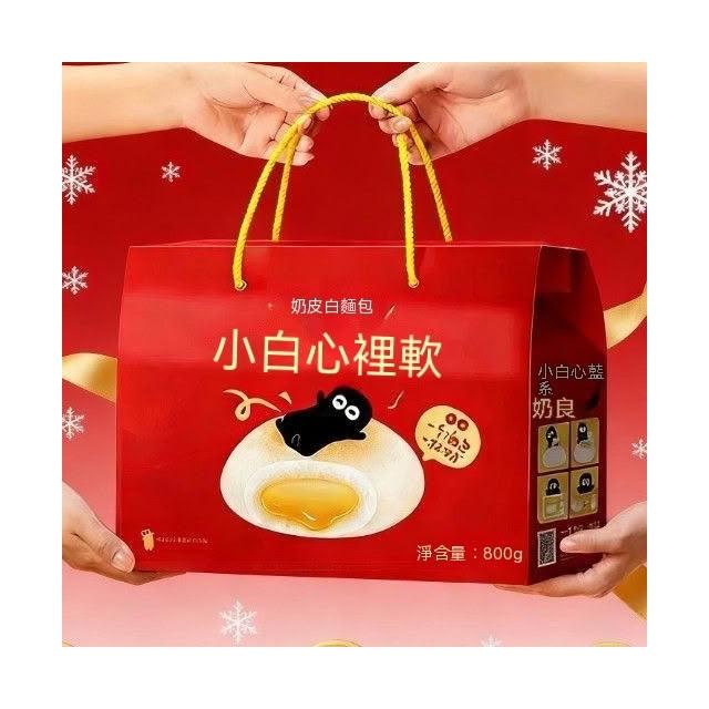熱賣中 小白心裡軟奶皮白麵包禮盒800g手提夾心蛋糕學生早餐休閒零食